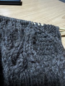 写真は、最近始めた編み物。